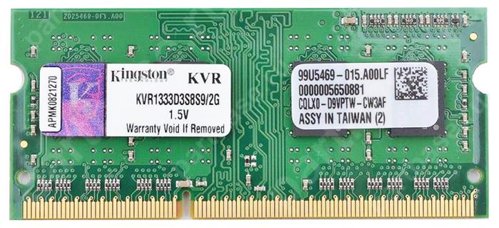 - Модуль памяти SO-DIMM DDR3 Kingston 2ГБ ValueRAM KVR1333D3S8S9/2G
