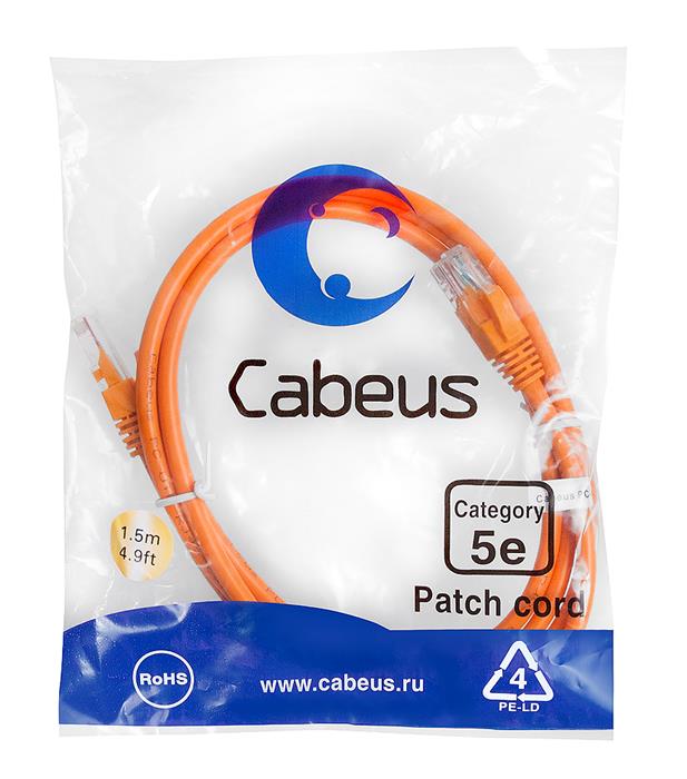 - Патчкорд UTP Cabeus PC-UTP-RJ45-Cat.5e-1.5m-OR-LSZH