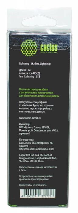 - Переходник для Apple Cactus CS-ACSC08 USB-Lightning серебристый