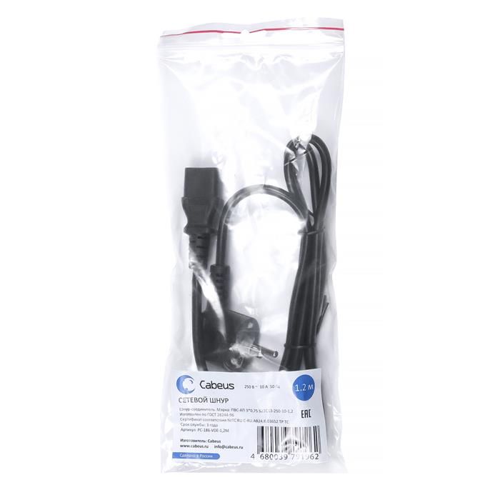 - Кабель питания Cabeus PC-186-VDE-1.2M