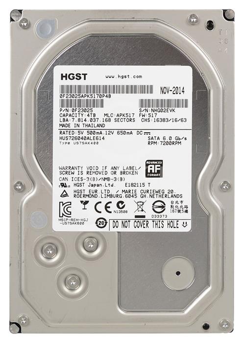 - Жесткий диск SATA HDD Hitachi 4Tb Ultrastar 7K6000 HUS726040ALE614 0F23025